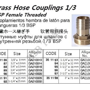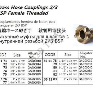 IMPA351186 BRASS HOSE COUPLING 1/3 BSP FEMALE THREAD, 3/8″x 9 MM, GA210010, ALLIGATOR