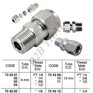 IMPA734314 ST.STEEL FLARELESS MALE CONNECTOR THREADED, 12 MM x PT 1/2