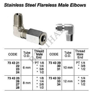 IMPA734331 ST.STEEL FLARELESS MALE ELBOW THREADED, 10 MM x PT 1/2