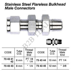IMPA734342 ST.STEEL FLARELESS BULKHEAD MALE CONNECTOR THREADED, 6 MM x PT 1/4