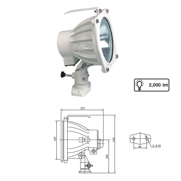 Applied to partial illumination when searching, night navigation, life saving or water working for a middle or small ship.