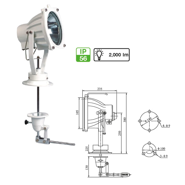 Applied to partial illumination when searching, navigation, life saving or water working for middle or small ships.