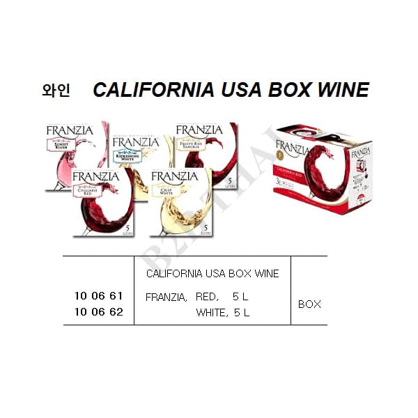 IMPA100662 WINE, CALIFORNIA USA BOX WINE, WHITE, FRANZIA, 5 L