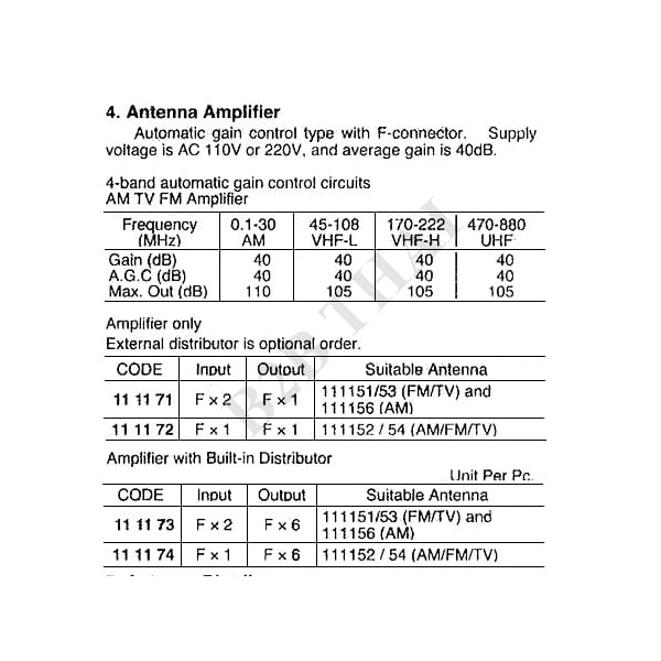 ANTENNA AMPLIFIER WITH BUILT-IN DISTRIBUTOR, IN: Fx2 OUT:Fx6