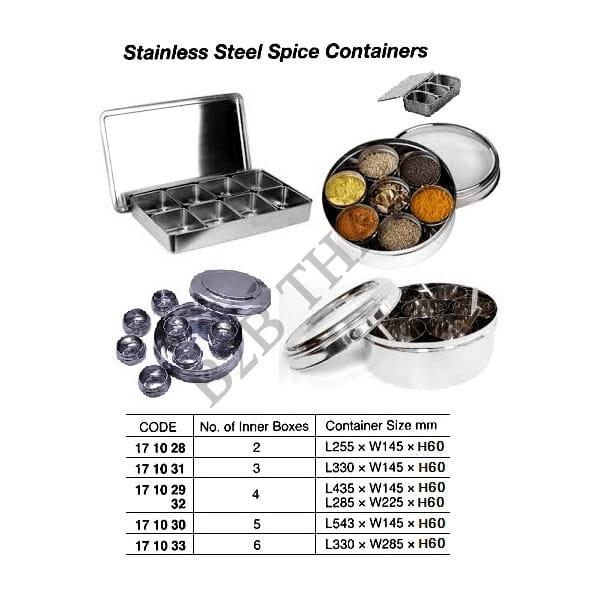 IMPA171032 ST.STEEL SPICE CONTAINER, 4 INNER BOXES 280 x 280 x 67 MM