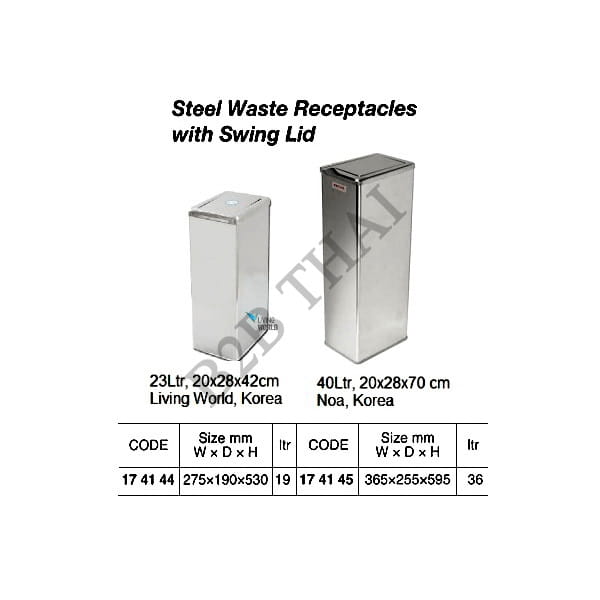 IMPA174144 STEEL WASTE RECEPTACLES WITH SWING LID, 275 x 190 x 530 MM, 19 LTR