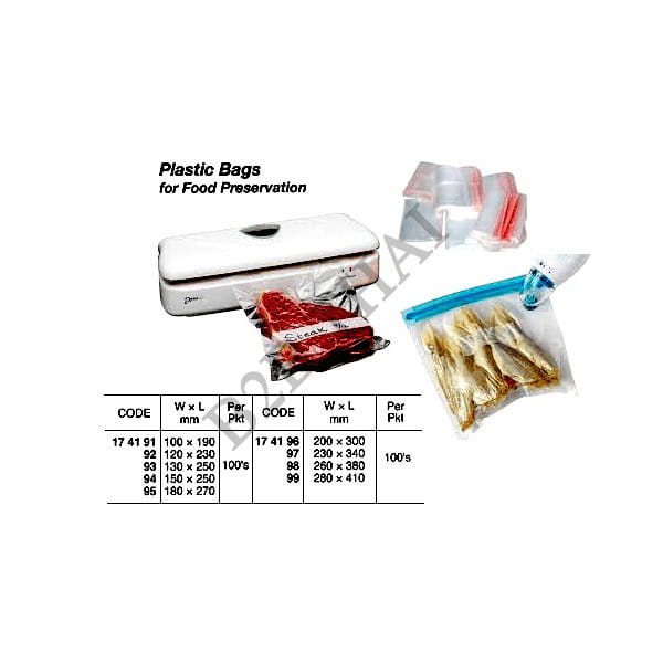 PLASTIC BAGS FOR FOOD PRESERVATION, 100’S/PKT, 260 x 380 MM