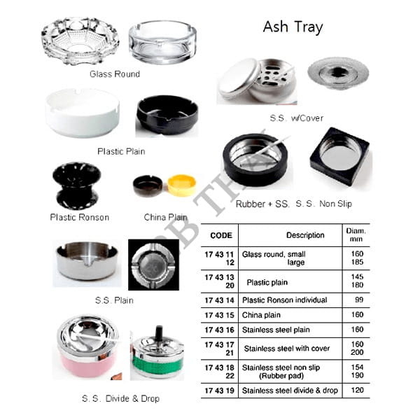 ASH TRAY, ST.STEEL, WITH COVER DIAM 200 MM