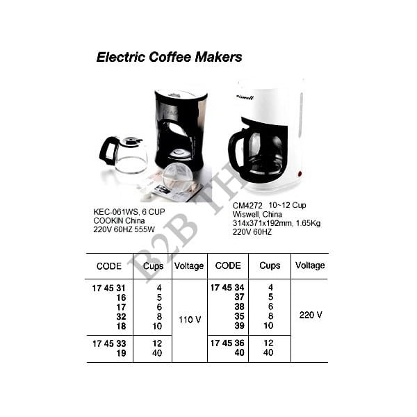 IMPA174532 ELECTRIC COFFEE MAKER FOR 8 CUPS 110V
