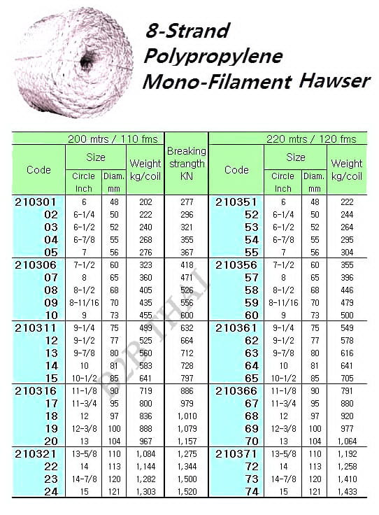 IMPA210315 HAWSER P.P MONO-FILAMENT 8-STR. 10-1/2″CIR ( D= 85 MM )x 200 M