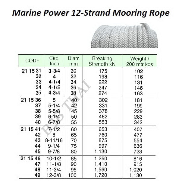 IMPA211546 MARINE POWER 12-STRAND MOORING ROPE, 85 MM x 200 MTR, BTL 1260 KN