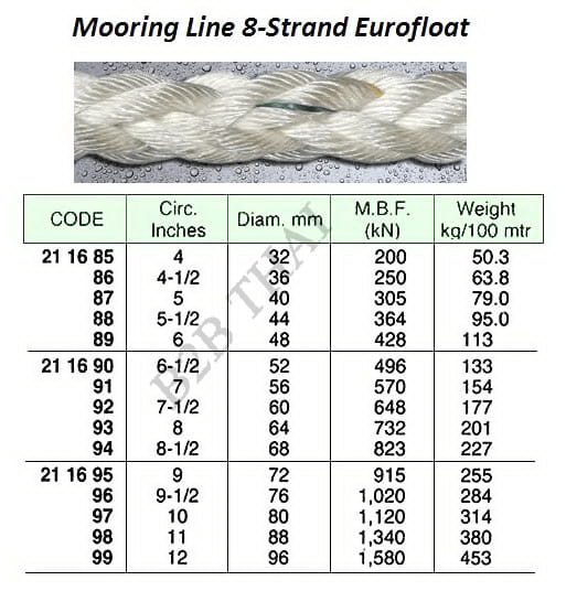 IMPA211698 8-STRAND, EUROFOLAT MOORING LINE, 88 MM, 200 MTR. MBF 1340 KN