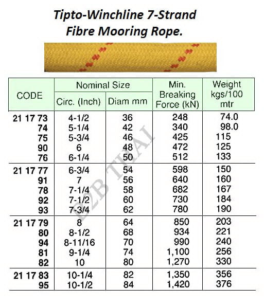 IMPA211793 7-STR TIPTO-WINCHLINE MOORING ROPE, 200 MTR x 62 MM, BTL: 780 KN