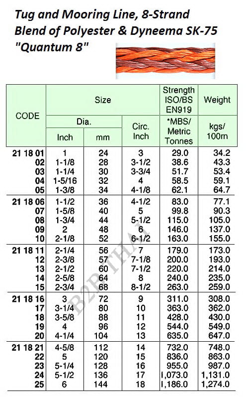 IMPA211815 TUG AND MOORING ROPE, 8-STRAND, POLYESTER/DYNEEMA SK-75, QUANTUM 8, 200 MTR x 68 MM, BTL: 263 TON