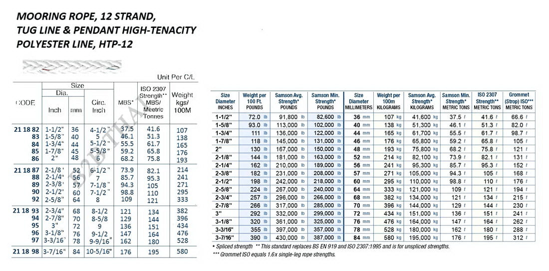 IMPA211894 12 STRAND, MOORING ROPE, TUG LINE & PENDANT HIGH-TENACITY POLYESTER LINE, HTP-12, 70 MM , MBS: 144 TON