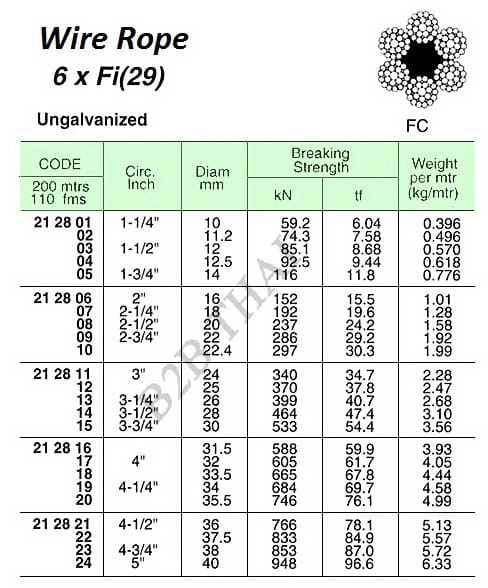 IMPA212822 WIRE ROPE, UN-GALV, 6xFI(29) FC JIS-B 37.5 MM DIA x 200 M W/CERT