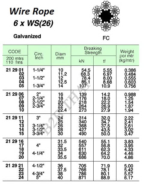 WIRE ROPE, GALV. 6xWS(26) FC JIS-A 24 MM DIA x 200 M W/CERT.
