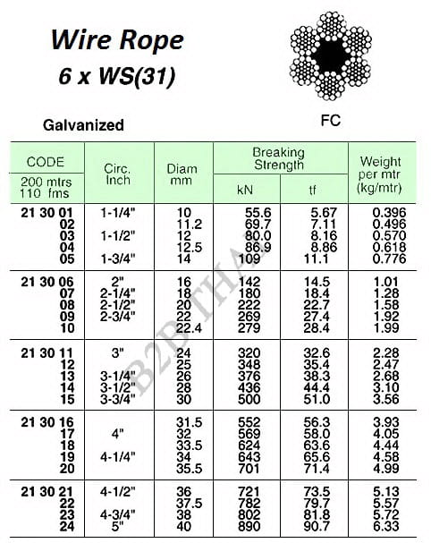 WIRE ROPE, GALV. 6xWS(31) FC JIS-A 40 MM DIA x 200 M W/CERT.