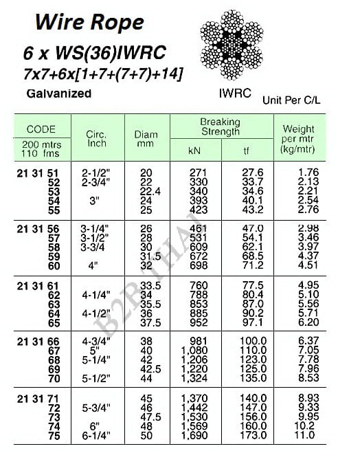IMPA213167 WIRE ROPE, GALV. 6xWS(36) IWRC 40 MM DIA x 200 M W/CERT.