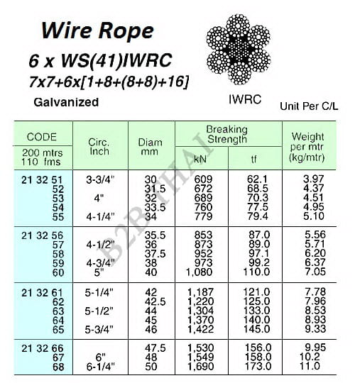 IMPA213268 WIRE ROPE, GALV. 6xWS(41) IWRC 50 MM DIA x 200 M W/CERT.