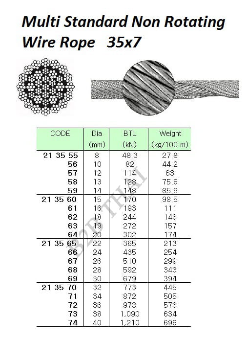IMPA213566 MULTI STRAND NON ROTATING WIRE ROPE, LANKOFLEX, GALV’ 35×7, 24 MM x 200 M/CL