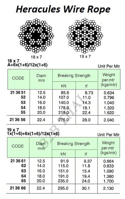 IMPA213666 WIRE ROPE, NON-ROTATING, HERCULES, 19×7, GAL, 22.4 MM
