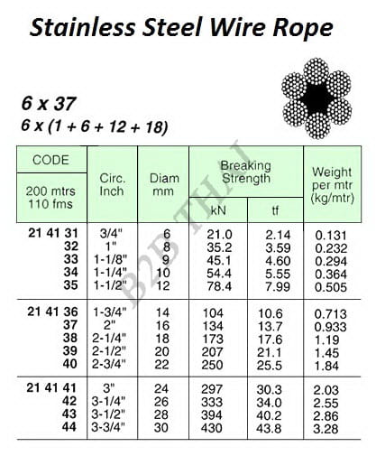 WIRE ROPE, ST. STEEL SUS304 6×37 FC, 12 MM x 200 M W/CERT