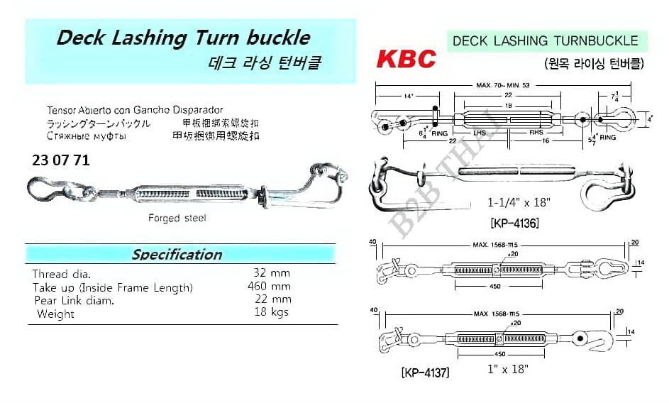 DECK LASHING TURNBUCKLE, 32 MM x 460 MM