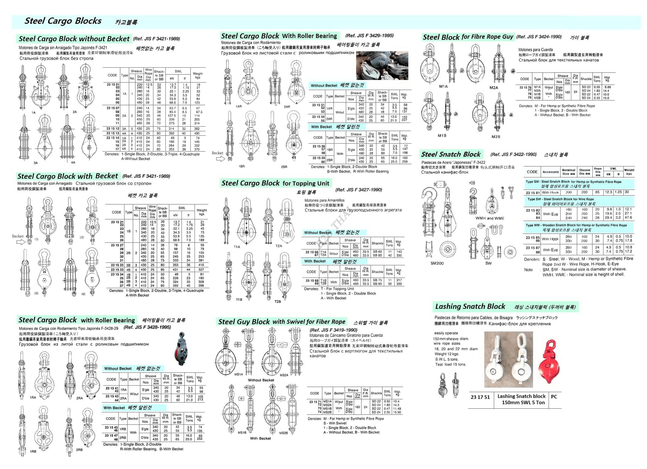 STEEL CARGO BLOCK WITHOUT BECKET, JIS-F3421, 2A DOUBLE 430 MM
