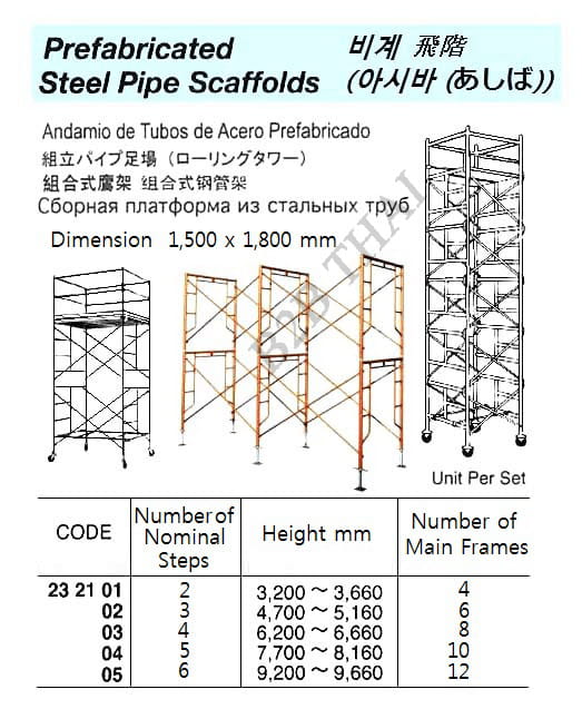 IMPA232103 PREFABRICATED STEEL PIPE SCAFFOLD (ROLLING TOWER), 4 STEPS, 6.2 ~6.66 MTR