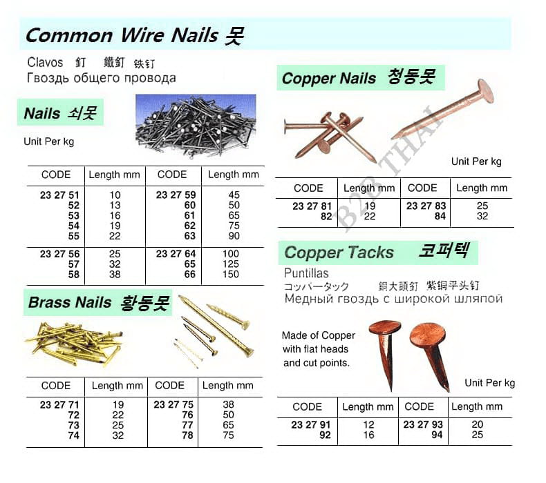 IMPA232776 BRASS NAIL, 50 MM