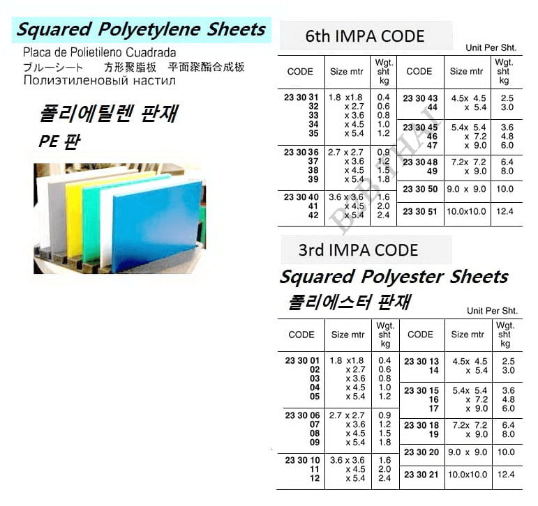 IMPA233045 SQUARED POLYETHYLENE SHEET, 5.4 x 5.4 MTR