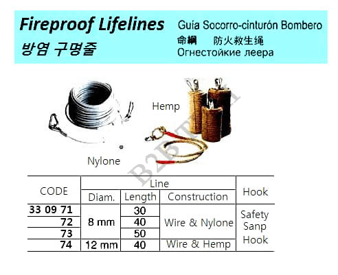 IMPA330971 FIREPROOF LIFELINE WITH HOOK, 8 MM x 30 MTR