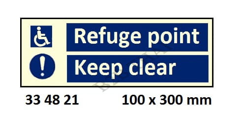IMPA334821 DIRECTION SIGN, 100×300 MM, REFUGE POINT, KEEP CLEAR