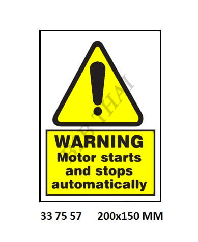 HAZARD SIGN, 200×150 MM, MOTOR STARTS AND STOPS AUTOMATICALLY