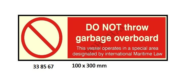 IMPA338567 MISCELLANEOUS SIGN, 100×300 MM, DO NOT THROW GARBAGE OVERBOARD…