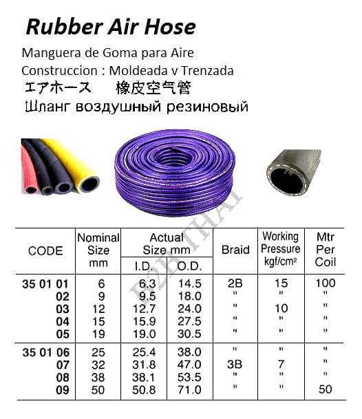 IMPA350109 RUBBER AIR HOSE, 7KG 50 MM x 3B