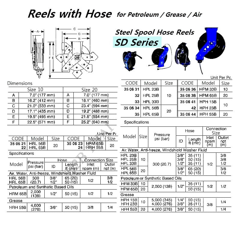 IMPA350621 STEEL SPOOL HOSE REELS, SD SERIES SIZE 20, HRL 56B, GRACO