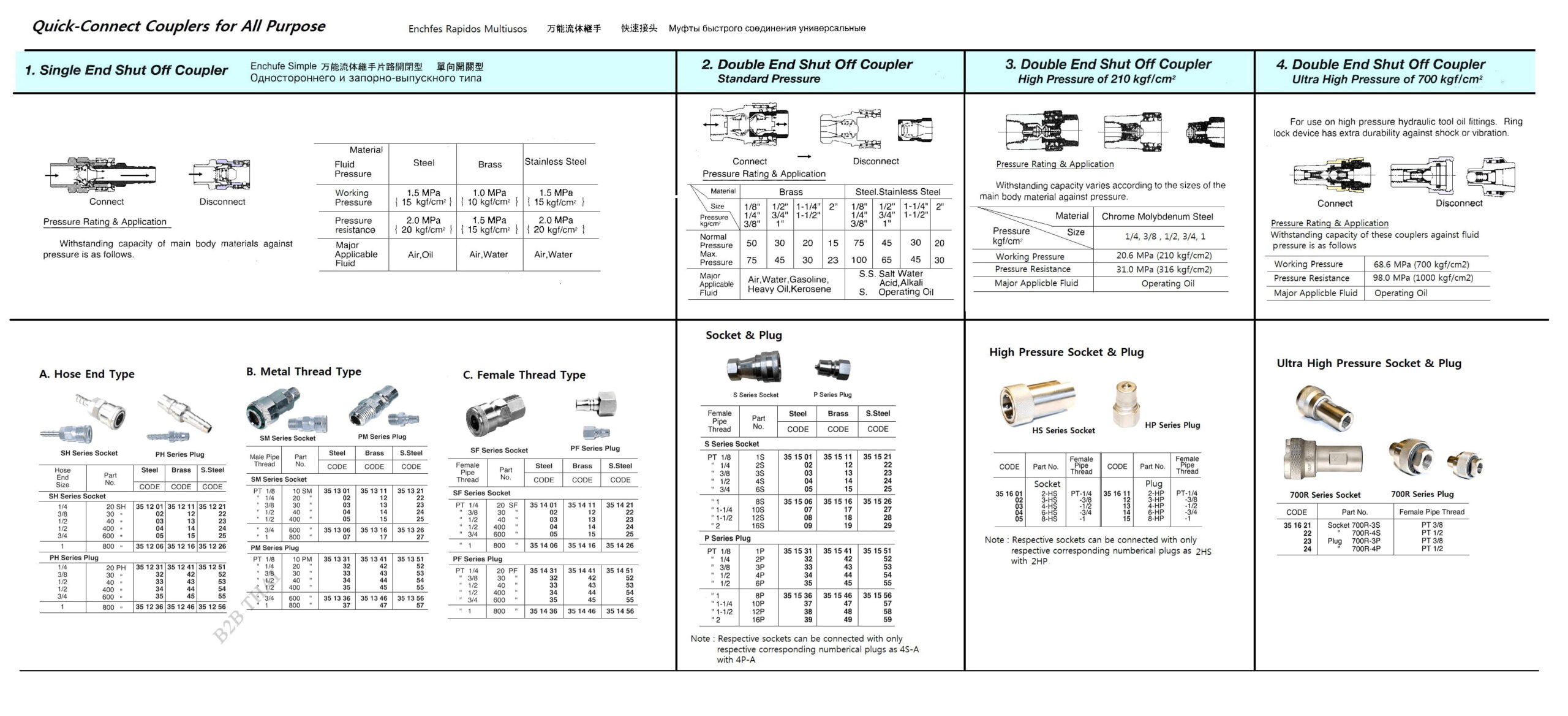 QUICK-CONNECT COUPLERS, DOUBLE END SHUT OFF FOR STANDARD PRESS., BRASS 8 S PT-1