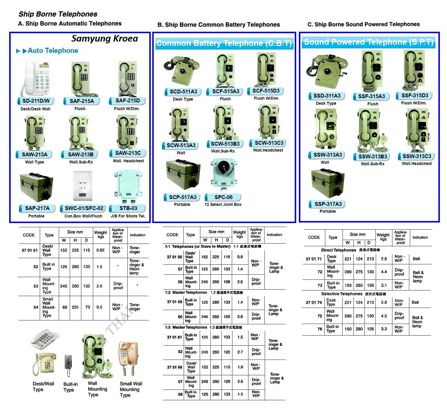 SHIP BORNE SOUND POWERED TELEPHONE, SELECTIVE WALL-MOUNTING TYPE