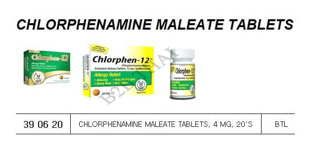 CHLORPHENAMINE MALEATE TABLETS, 4 MG, 20’S