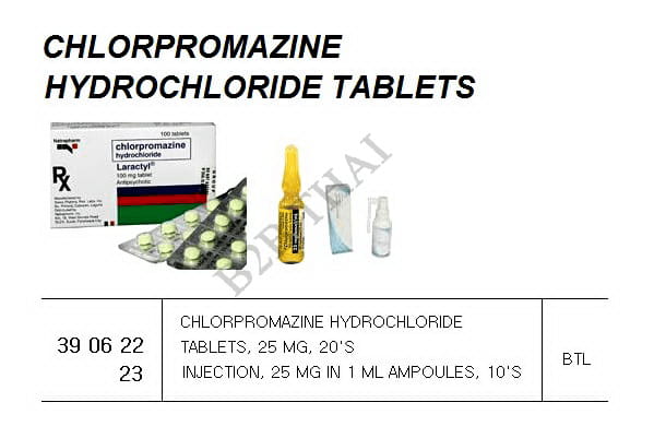 CHLORPROMAZINE HYDROCHLORIDE TABLETS, 25 MG, 20’S