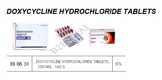 DOXYCYCLINE HYDROCHLORIDE TABLETS, 100 MG, 100’S