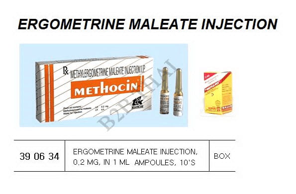 ERGOMETRINE MALEATE INJECTION, 0.2 MG, IN 1 ML AMPOULES, 10’S