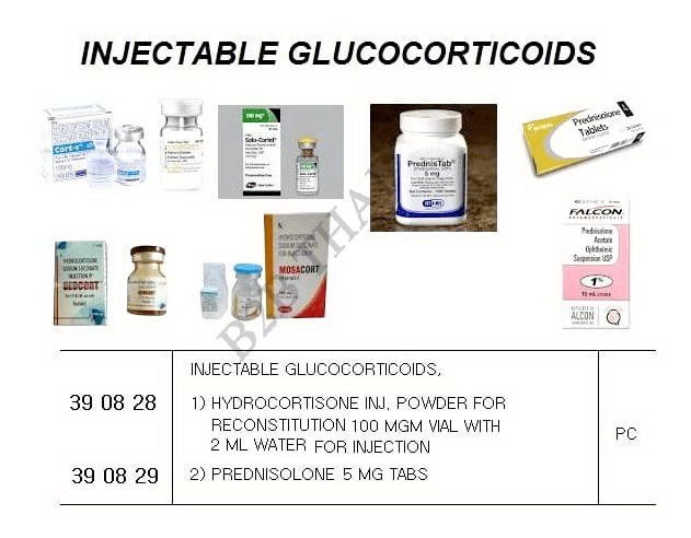 IMPA390829 INJECTABLE GLUCOCORTICOIDS, 2) PREDNISOLONE 5 MG TABS