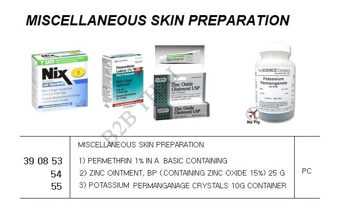 IMPA390853 MISCELLANEOUS SKIN PREPARATION 1) PERMETHRIN 1% IN A BASIC CONTAINING