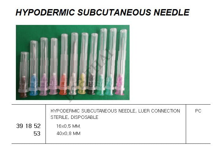 IMPA391852 HYPODERMIC SUBCUTANEOUS NEEDLE, LUER CONNECTION, 16×0.5 MM, STERILE, DISPOSABLE