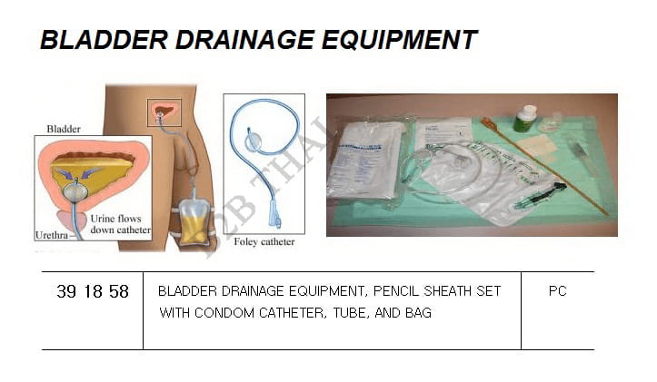 IMPA391858 BLADDER DRAINAGE EQUIPMENT, PENCIL SHEATH SET WITH CONDOM CATHETER, TUBE, AND BAG