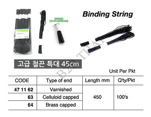 CELLULOID CAPPED TY BINDING STRING, 450 MM, 100’S/PKT