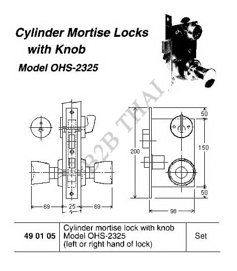 CYLINDER MORTISE LOCK WITH KNOB, OHS#2325
